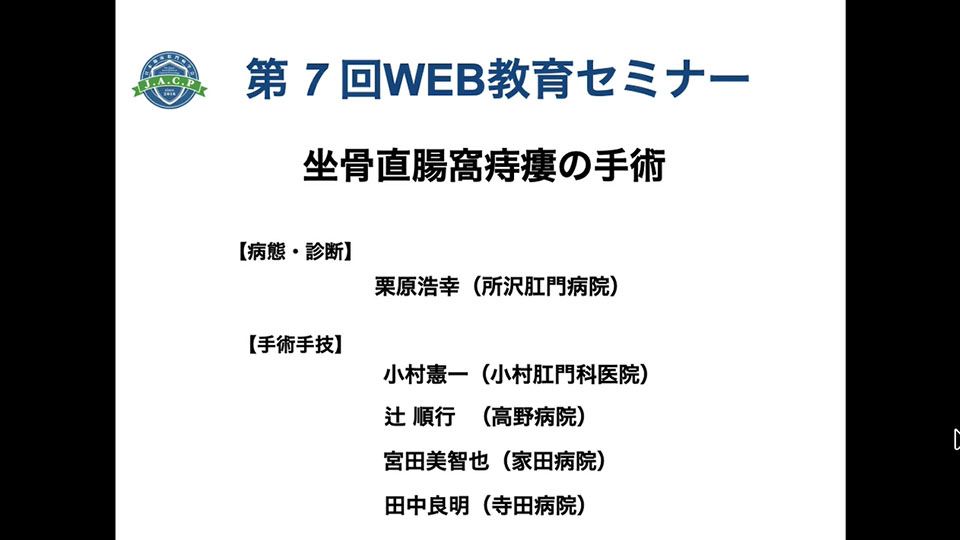 | 第3回WEB教育セミナー | 2021.10.3 | 坐骨直腸窩痔瘻の手術 |